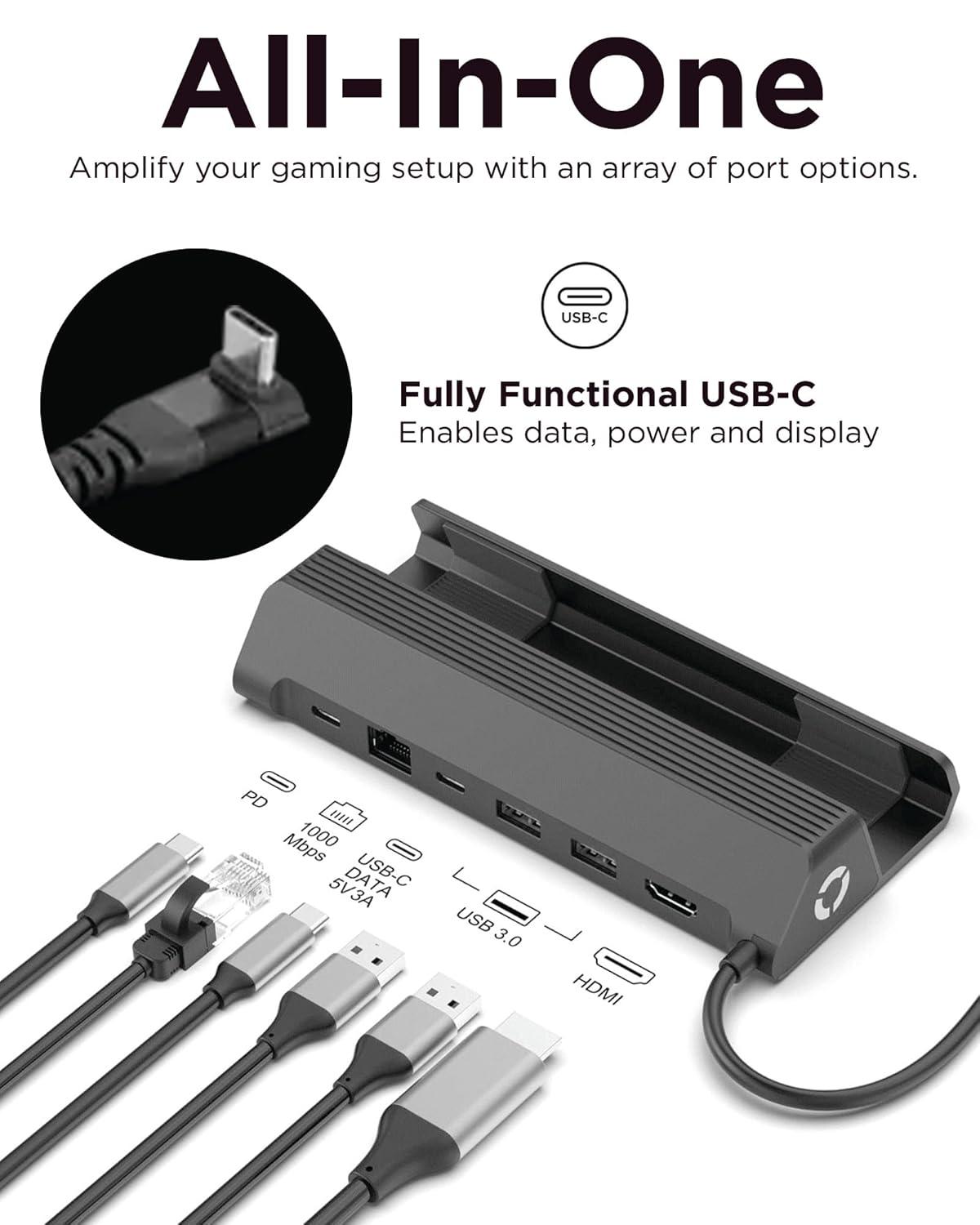 All-In-One Connectivity: Amplify your gaming setup with an array of port options. From connecting extra screens to maintaining a stable Ethernet connection, this dock eliminates cable chaos and offers unparalleled performance with seamless port expansion
