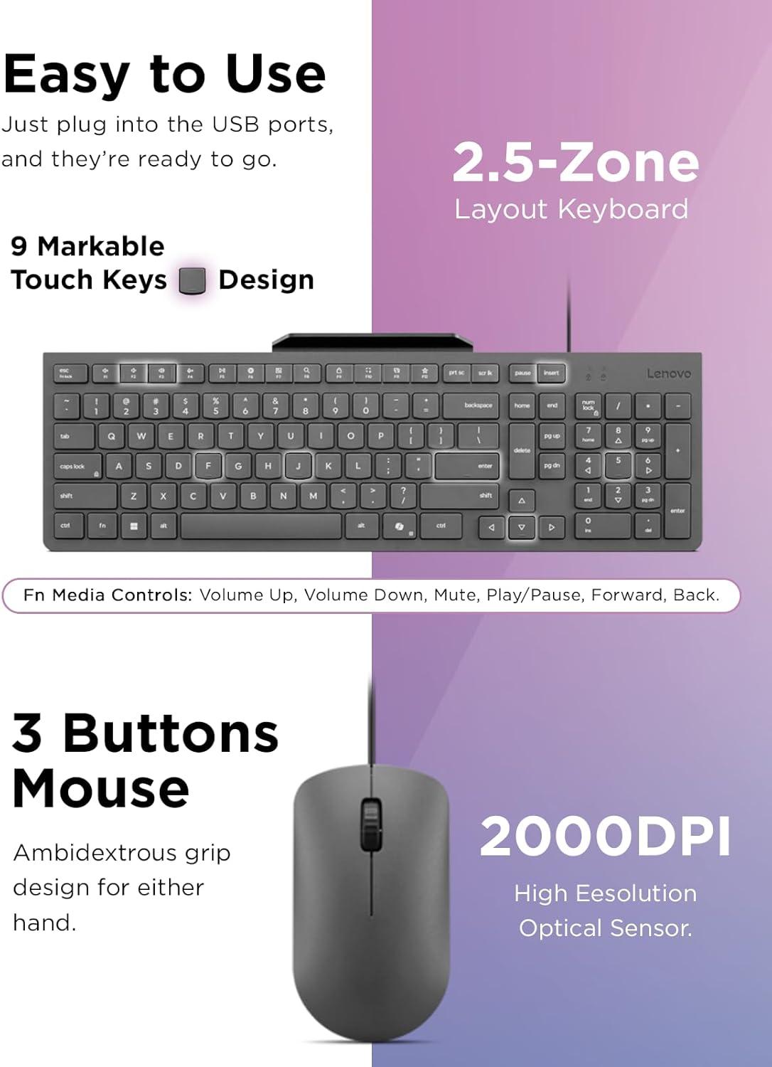 Effortless Comfort, Enhanced Efficiency: The Keyboard & Mouse Combo isn't just about style; it's about practicality. The island keys keyboard design, along with the 2.5 zone layout, offers a seamless and efficient typing experience. Whether you're navigating spreadsheets or composing emails, you can rely on an uncomplicated, reliable wired connection
