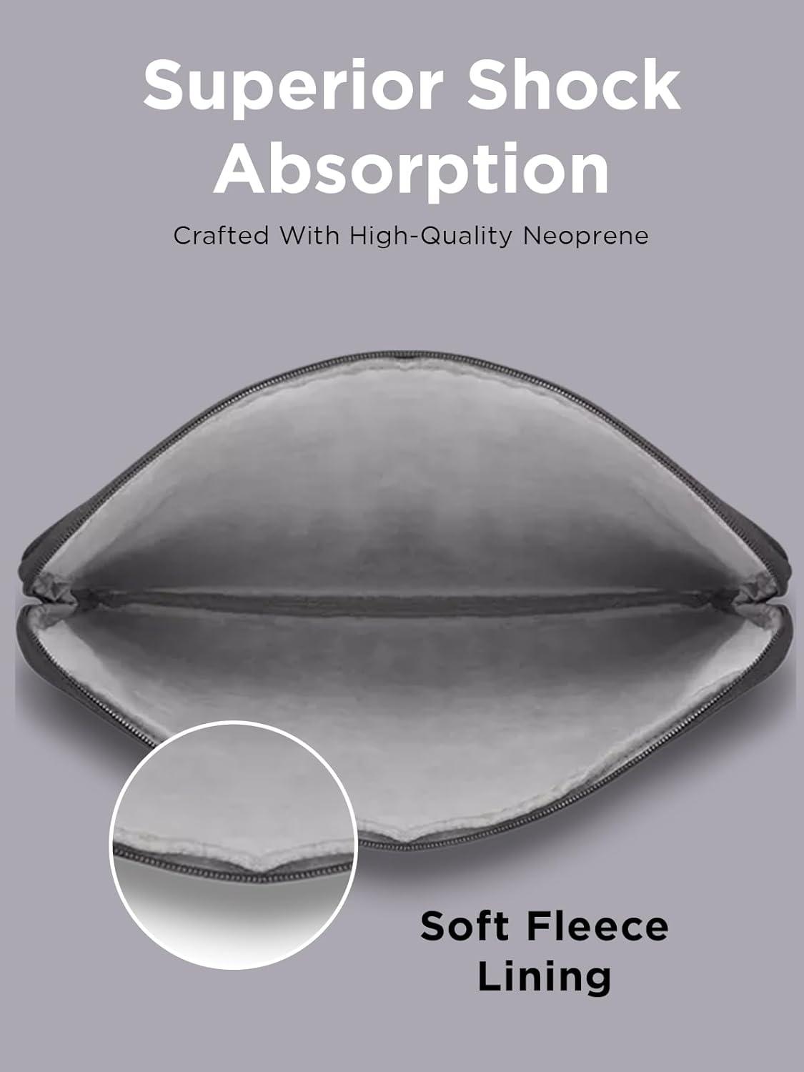 Superior Shock Absorption: Crafted with high-quality neoprene, our sleeve offers exceptional shock absorption, safeguarding your laptop from accidental bumps and impacts. The soft, anti-scratch fleece lining adds an extra layer of protection, keeping your device in pristine condition.