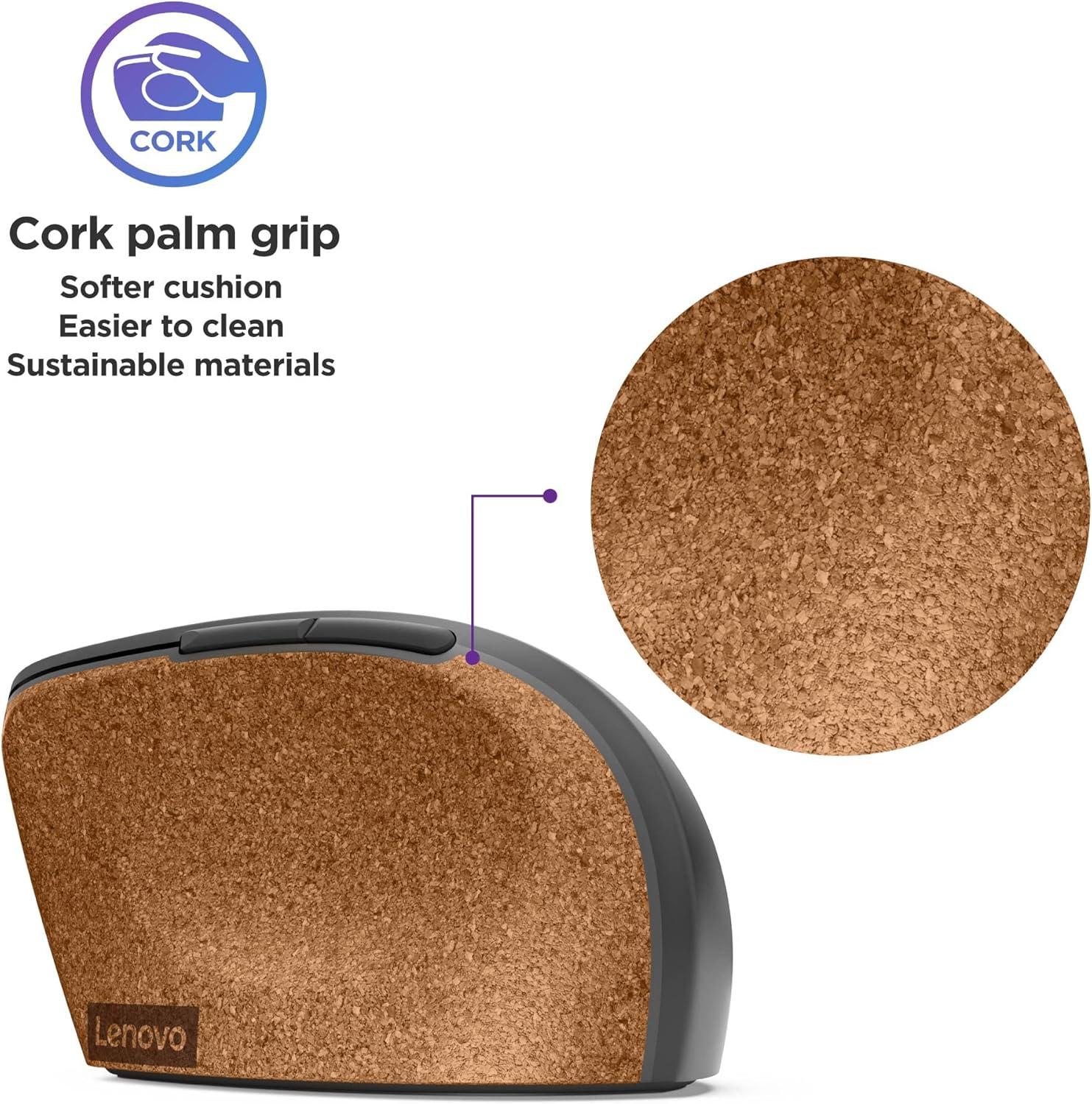 Lenovo Go Multi-Device Wireless Mouse, 2.4GHz Nano USB-C Receiver, Bluetooth, Adjustable DPI, USB-C Rechargeable Battery, Qi Wireless Charging, Ambidextrous, GY51C21211, Grey(Ergonomic)