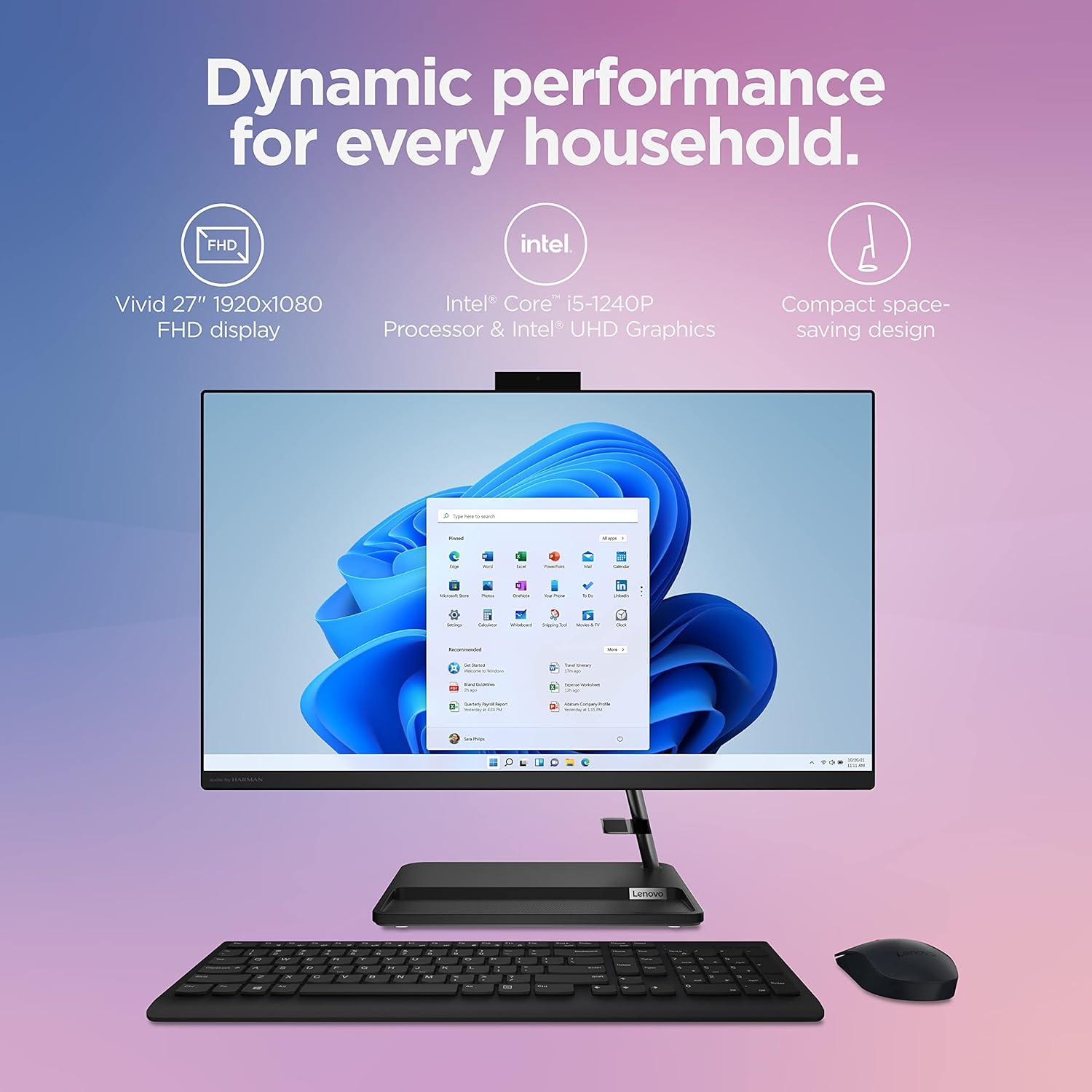Lenovo IdeaCentre AIO 3i – 2022 – All-in-One Desktop – 27″ FHD Touch Display – 5MP Camera – Windows 11 Home – 8GB Memory – 512GB Storage – Intel Core i5-1240P – Black – Mouse & Keyboard Included