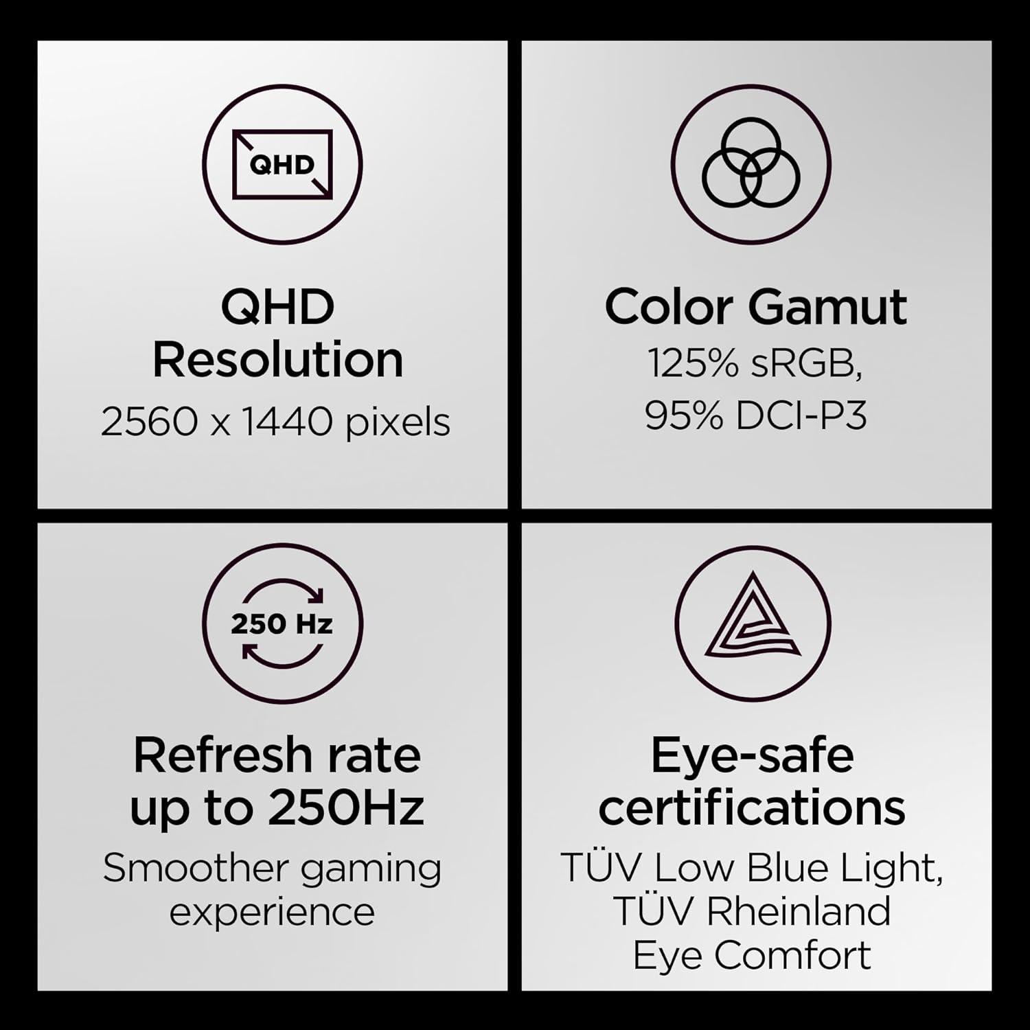 Lenovo Legion Y32p-30 Gaming Monitor, 31.5” 4K Display, 144Hz, 0.2ms Response, AMD FreeSync Premium, HDR400, KVM, USB-C, Lift/Tilt/Swivel Stand, HDMI 2.1 and DisplayPort 1.4, Raven Black(27″ QHD 250Hz)