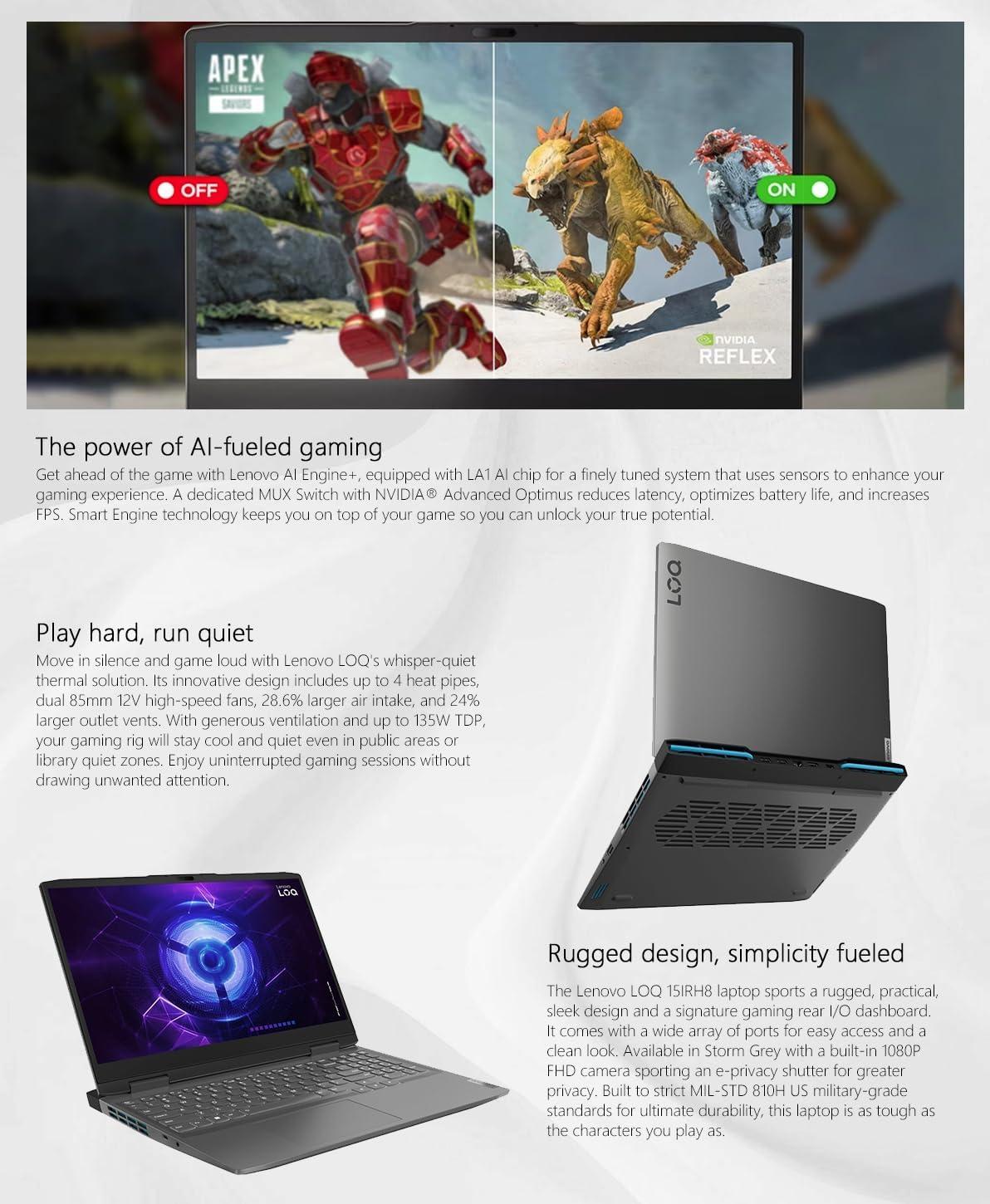 Our clearance event features the best deals on Lenovo LOQ 15.6" Gaming Laptop, FHD (1920×1080) IPS Display, AMD Ryzen 7 7840HS 8-core with 64GB DDR5 RAM 4TB SSD, NVIDIA GeForce RTX 4050 6GB, Windows 11, Storm Grey, W/GaLiMu(16GB RAM | 1TB SSD) and accessories. Shop now!