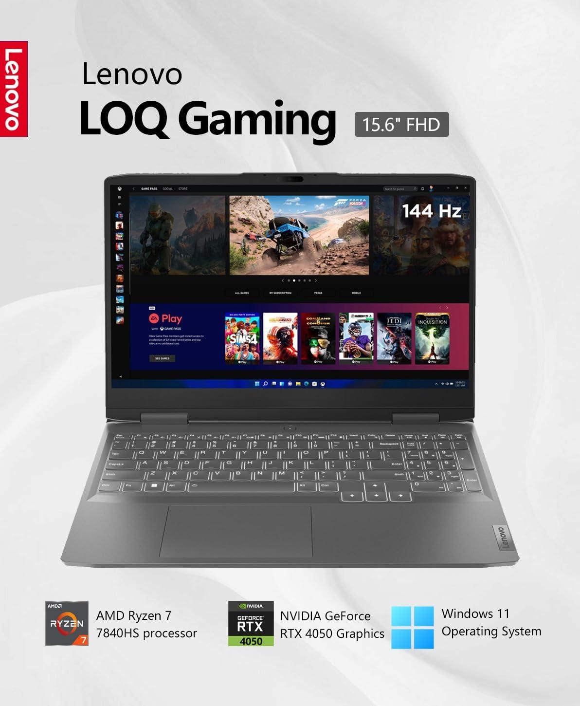 Lenovo LOQ 15.6″ Gaming Laptop, FHD (1920×1080) IPS Display, AMD Ryzen 7 7840HS 8-core with 64GB DDR5 RAM 4TB SSD, NVIDIA GeForce RTX 4050 6GB, Windows 11, Storm Grey, W/GaLiMu(32GB RAM | 2TB SSD)