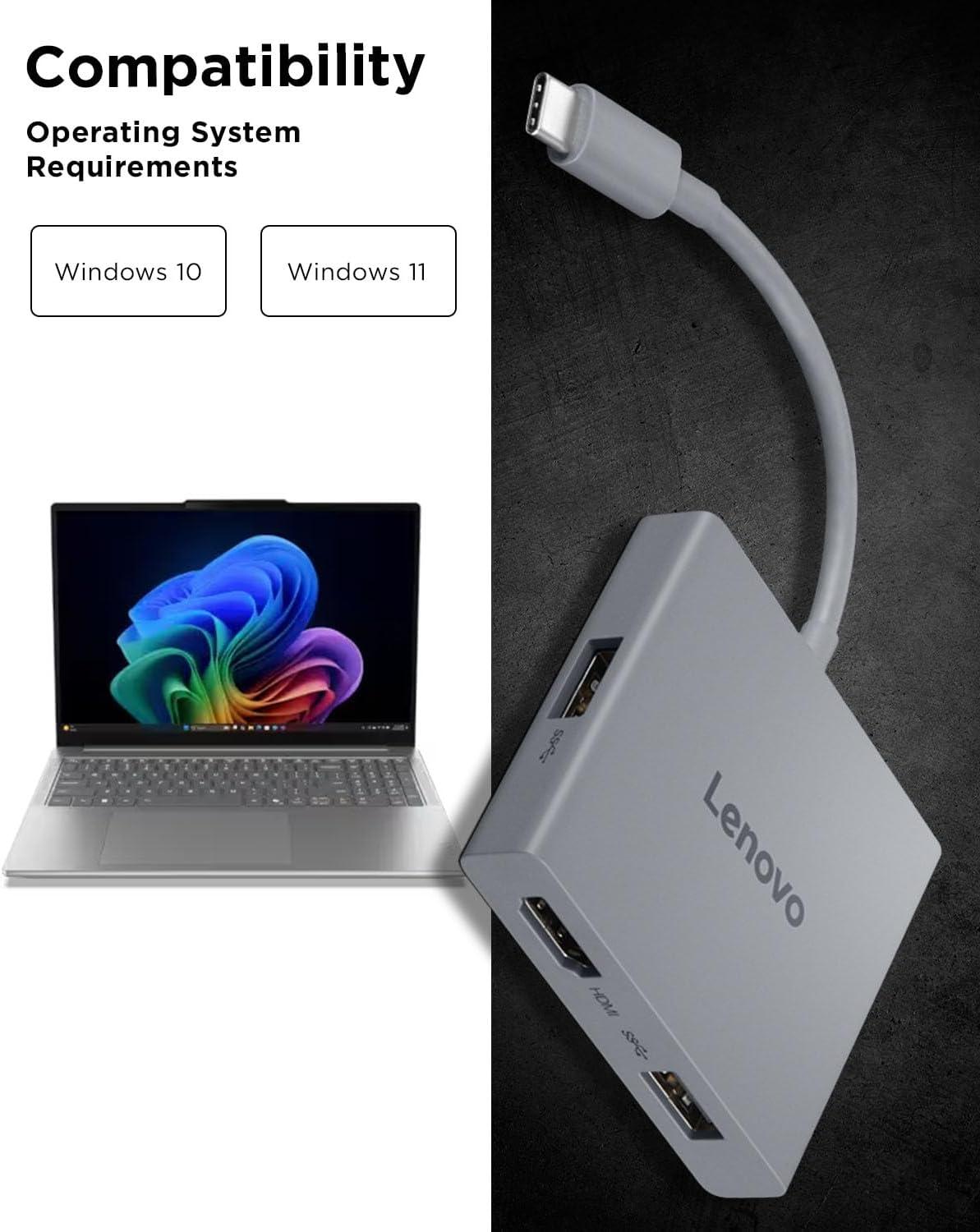 Empowerment through Singular Cable Mastery: Uncover the potential for boundless productivity by simply carrying the Lenovo travel hub. This unassuming accessory converts a single USB-C cable into a hub of capabilities. Revel in the luxury of experiencing 4K content through HDMI, linking up to three USB-A devices, accessing two SD/TF card readers, and seamlessly utilizing USB-C power pass-through for charging needs.