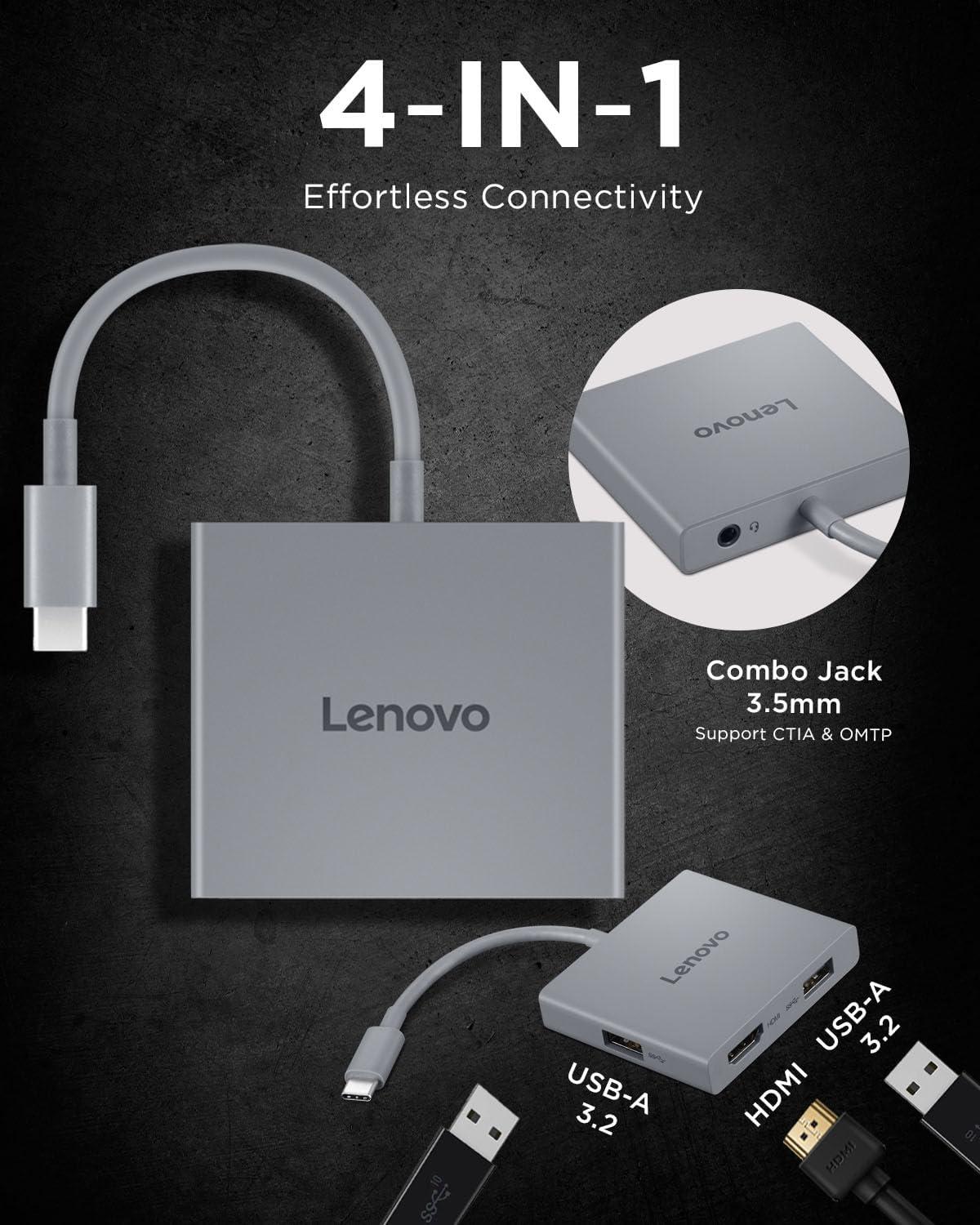 Lenovo – USB-C 7-in-1 Hub – Computer Networking Laptop Accessory – Laptop Docking Station - 4K via HDMI, 3 USB-A devices, 2 SD/TF Card Readers USB-C Power Pass Through(4-in-1 Hub)